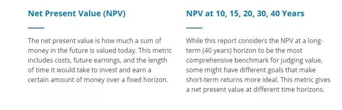 研究中使用了投資理論中的凈現(xiàn)值(netpresent value,簡稱NPV),來計算學(xué)生入學(xué)后的10、15、20、30、40年究竟能產(chǎn)生多少收益。