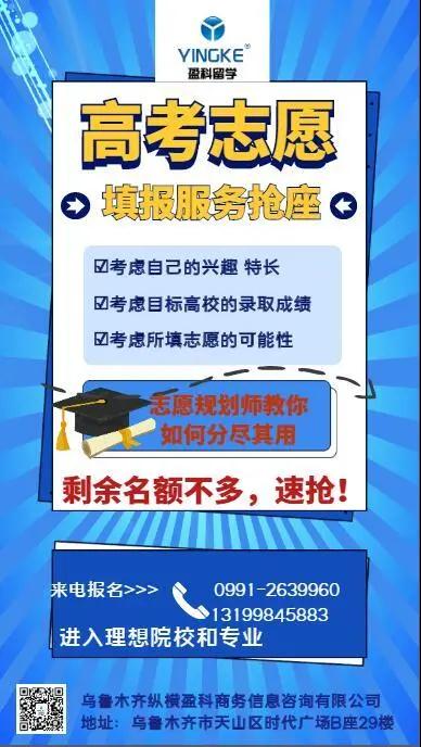 更多留學(xué)、高考相關(guān)資訊,請(qǐng)關(guān)注微信公眾號(hào)“新疆盈科留學(xué)”或加入微信群“盈科高考志愿填報(bào)公益講座沙龍”。
