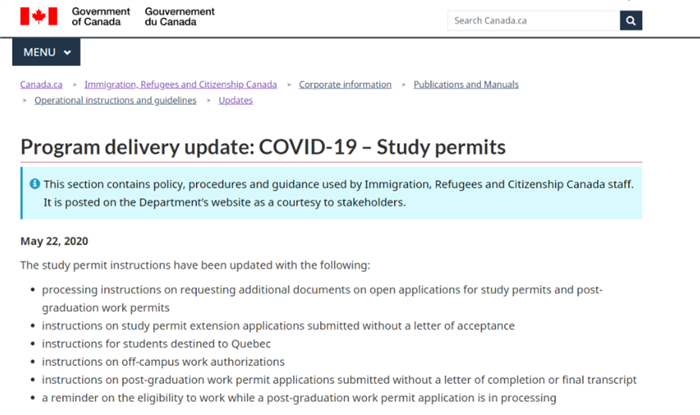 為此,加拿大移民部發(fā)布了一些靈活的調(diào)整。加拿大移民部在5月22日,更新了有關(guān)學(xué)簽和畢業(yè)工簽的臨時(shí)變更。